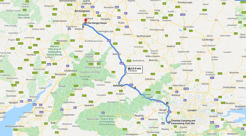 Nach dem Frühstück genossen wir nochmal eine ausgiebige Dusche, wohlwissend, dass wir an diesem Tag nicht mehr die Gelegenheit bekommen würden. Wir hatten uns vorgenommen, auf der Durchreise nach Liverpool bei Birmingham zu campen. Die Buchung eines Stellplatzes war nicht mehr möglich, also suchten wir uns via Googlemaps / Satelitenaufnahmen einen öffentlichen Parkplatz mitten in der Prärie und wurden fündig.