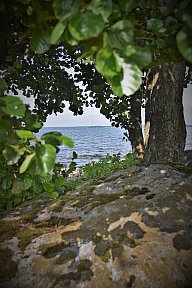 Direkt nach der Ankunft bereiteten wir das Schlauchboot vor um dann, vor dem Start, von einem plötzlichen Sturm überrascht zu werden - also Rettungswesten wieder aus. Wenige Minuten später zogen wir in guter Hoffnung die Rettungswesten wieder an, als ein genauso plötzlicher starker Regenguss uns dazu brachte, sie wieder auszuziehen. Wir wollten den Plan schon aufgeben, doch Klärchen meinte es schlussendlich doch gut mit uns und wir begaben uns aufs Wasser. Herrlich. Wir blieben in Nähe der Küste und fuhren das Ufer des langgezogenen Campingplatzes ab, um uns dann wesentlich weniger arbeitsreich (manche würden sagen „faul“) einfach bis zum Steg zurücktreiben zu lassen.