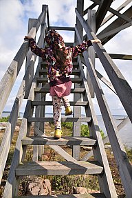 Nach dem Frühstück kratzte ich allen Mut zusammen, um Annis Bewegungsdrang (immernoch stark erkältet, aber Ausruhen ist nicht) gerecht zu werden. Wir betraten gemeinsam das „Kuhgehege“, um den Aussichtssturm zu besuchen. Tatsächlich war der Ausblick traumhaft: bis zum Hafen mit den unzähligen Segelbooten und der berühmten Kirche auf der einen und zur anderen Seite auf den offenen See, der auch Meer sein könnte, reichte der Blick. Die Kühe blieben uns diesmal glücklicherweise auch auf dem Rückweg fern.