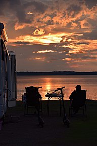 Während der Grill zum Tagesabschluss vorbereitet wurde - so viel frische Luft macht bekanntlich hungrig - testeten die Kinder selbstständig die Platzeigene Hüpfburg. Bei schönstem Sonnenuntergang wurden die Campingstühle zum Lesen, Zeichnen, oder – wie in Linneas Fall – zum gemeinschaftlichen Schwätzchen mit der Hamburger Nachbarsfreundin okkupiert.