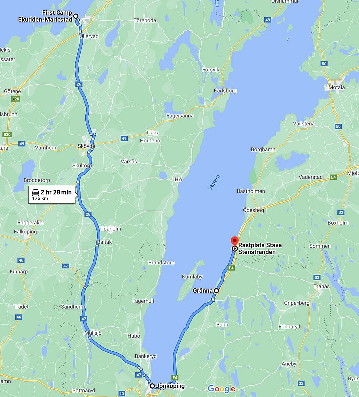 Etappenstart: 11.45 Uhr in Ekudden-Mariestad (Campingplatz Ekudden-Mariestad)