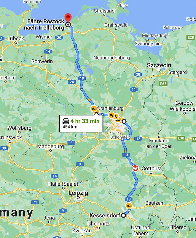 Pünktlich (45 Minuten zu spät), beladen mit Ruderboot und einigen neuen Utensilien (Falteimer mit Abtropfwanne, Rückfahrkamera, neuer faltbarer Campingtisch (#tolleerfindung),...) starteten wir Richtung Rostock. Auf der Strecke sahen wir unzählige Staus, Unfälle und Rehe (lebend!) direkt am Fahrbahnrand.